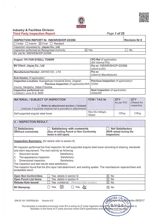 A Jiayao é uma fabricante especializada na produção e fornecimento de torres de aço para projetos de telecomunicações e transmissão de energia, operando sob o sistema de gestão da qualidade ISO 9001 desde janeiro de 2010. Ao longo dos anos, trabalhamos em uma ampla variedade de projetos para áreas urbanas, suburbanas e remotas, adaptando nossas estruturas de torres às diferentes condições técnicas e de instalação. Nosso foco é fornecer torres de aço para telecomunicações e transmissão que atendam às necessidades reais dos projetos e funcionem de forma confiável ao longo do tempo.